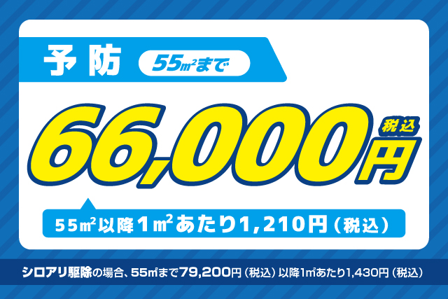 (社)日本しろあり対策協会認定薬剤の認定を受けた薬剤のみを使用。安価だからといって認定の受けていない薬剤の使用は一切致しません。