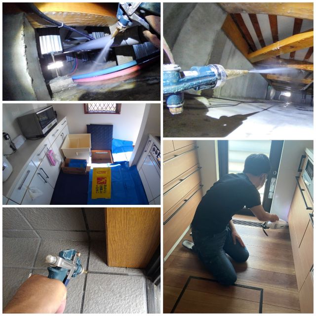 床下入口周りの養生作業から作業後の清掃まで念入りに行います。ご不明な点などはその都度、お気軽にお尋ねください。